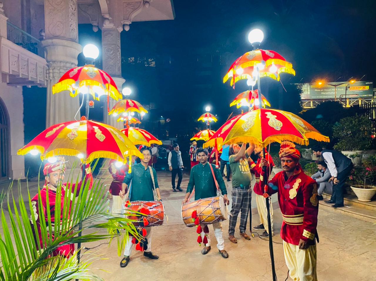 They perform across India, bringing vibrant beats and cultural essence to weddings, festivals, and special occasions. Their well-trained artists create a lively and unforgettable atmosphere for guests, making every moment memorable. MJ Dholi’s Team is committed to delivering high-quality performances with perfect coordination, enthusiasm, and style, ensuring every event stands out with grandeur and joy.