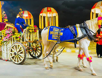MJ Dholi’s Team is a professional and well-dressed performing group based in Vandurga Temple , Anegundi Road Bejai Manglore, known for adding energy and excitement to every celebration. With years of experience in the entertainment industry, the team specializes in all types of dhol performances, wedding bands, horses and raths, safa and pagadi services, and traditional instruments like langa, nagada, and shehnai.